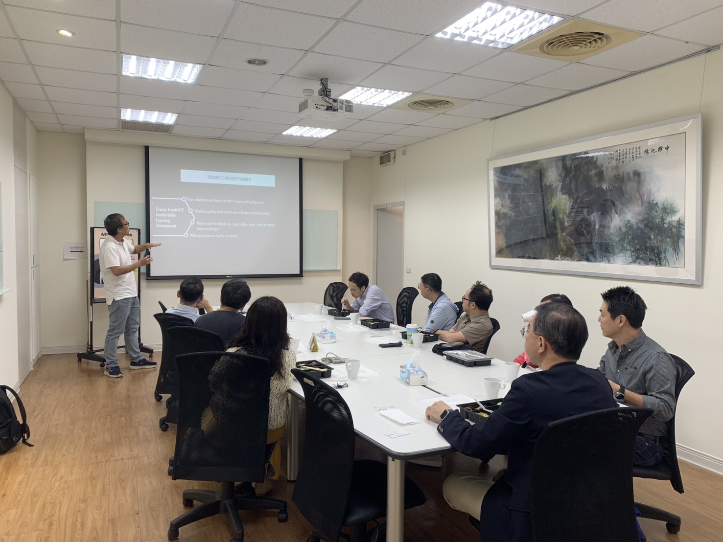 2023/04/25 商學院EMI社群活動 - Creating an Engaging English-Medium Instruction (EMI) Classroom Brad老師以自身教授EMI課程所實行的能提高學生專注力、參與度的教學策略及小技巧,與社群內教師分享。參與活動的老師踴躍分享自己使用的策略,亦由Brad老師的分享中學習到適合自己課堂使用的小技巧,達到教師社群交流分享的設立成效。 |