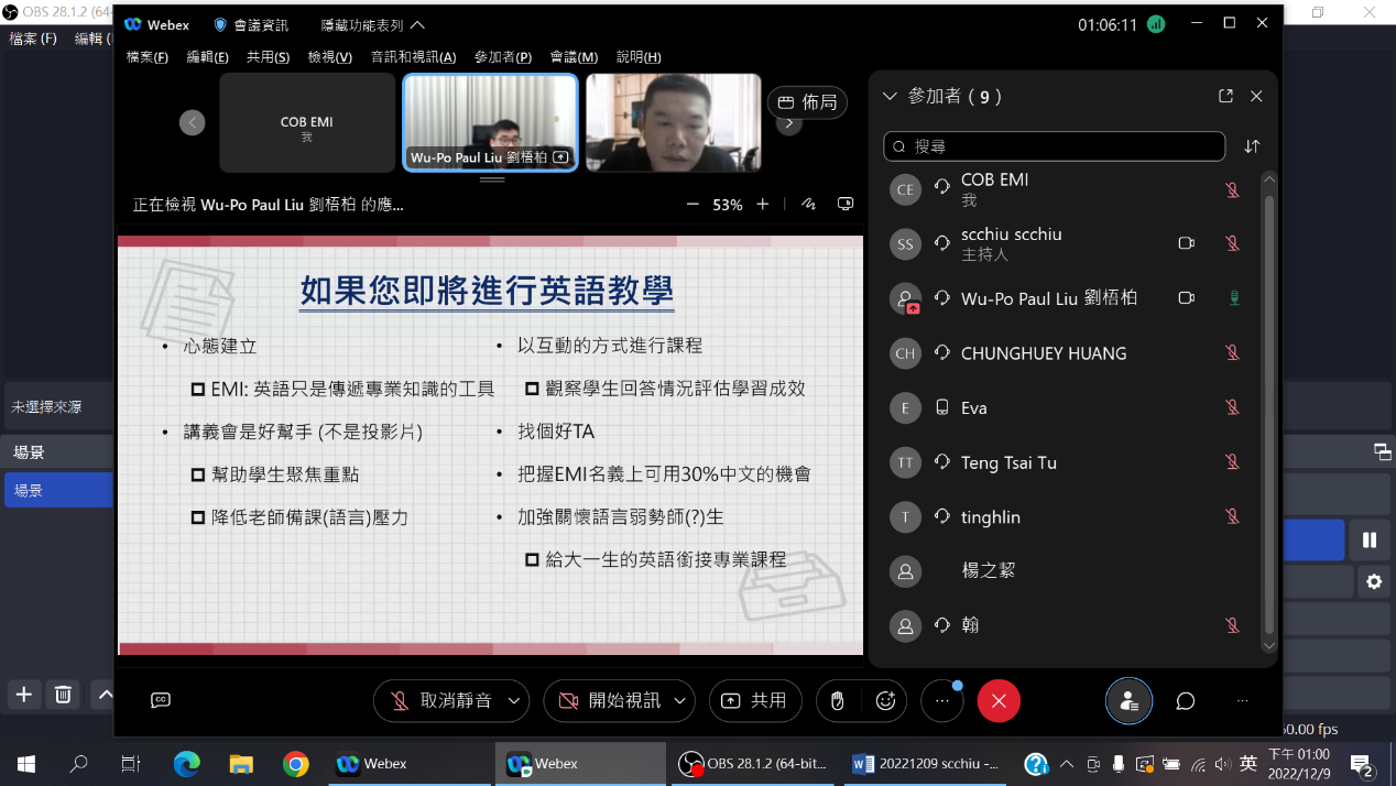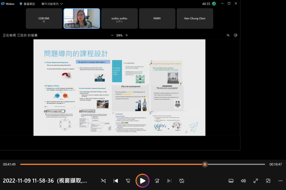 2022/12/09 商學院EMI社群活動 - -雙語教學經驗分享 講者: 成功大學會計學系暨財金所劉梧柏老師 |