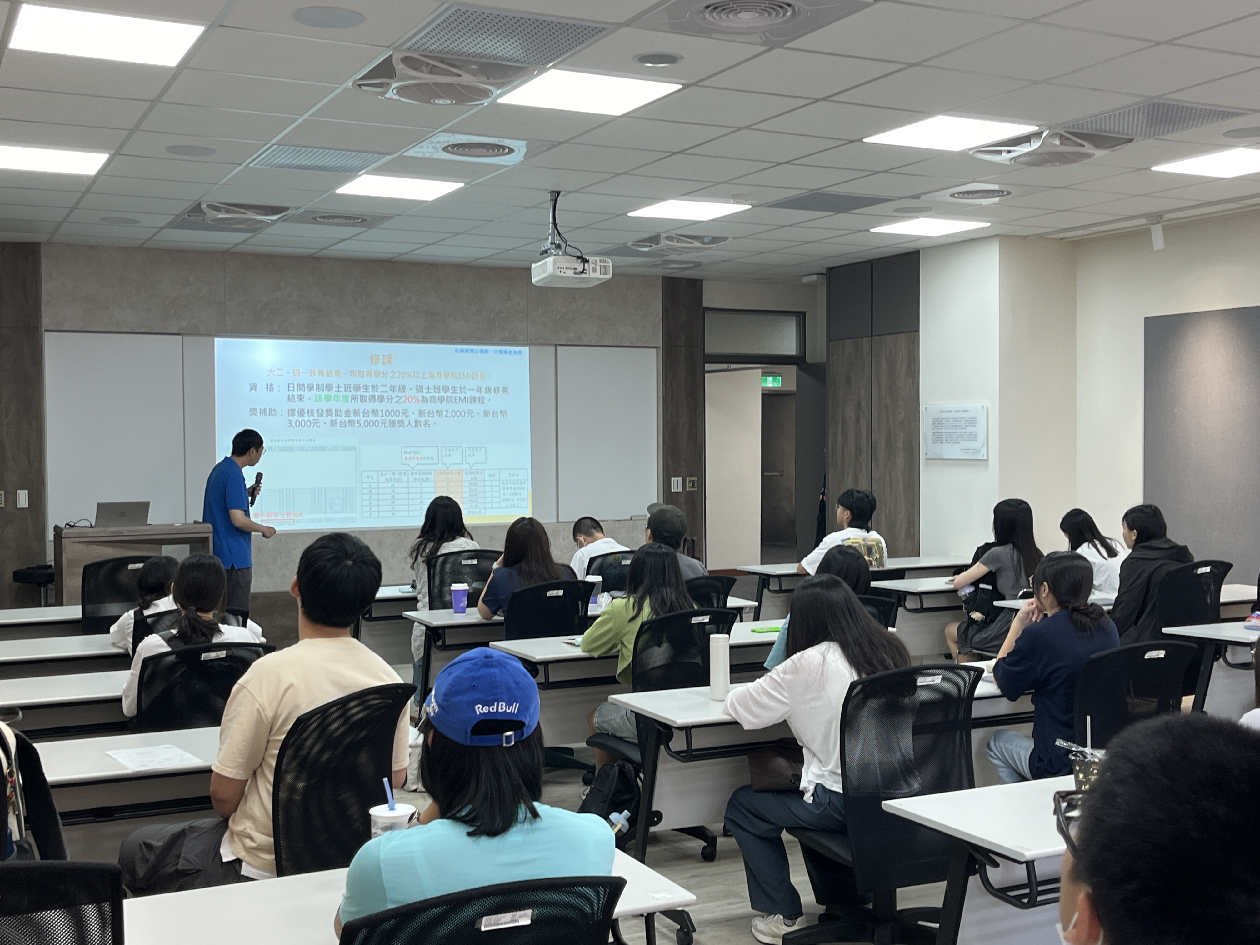 2024/09/18 EMI學生說明會 雙語化學習計畫執行長說明雙語計畫之背景、計畫推動的方向、以及商學院於此計畫下提供予學生的各項獎補助、獎補助之申請時程、與申請之注意事項。於提問時間同學們也踴躍發言,針對申請細節提問確認,與計畫辦公室有了雙向交流,活動圓滿成功。 |