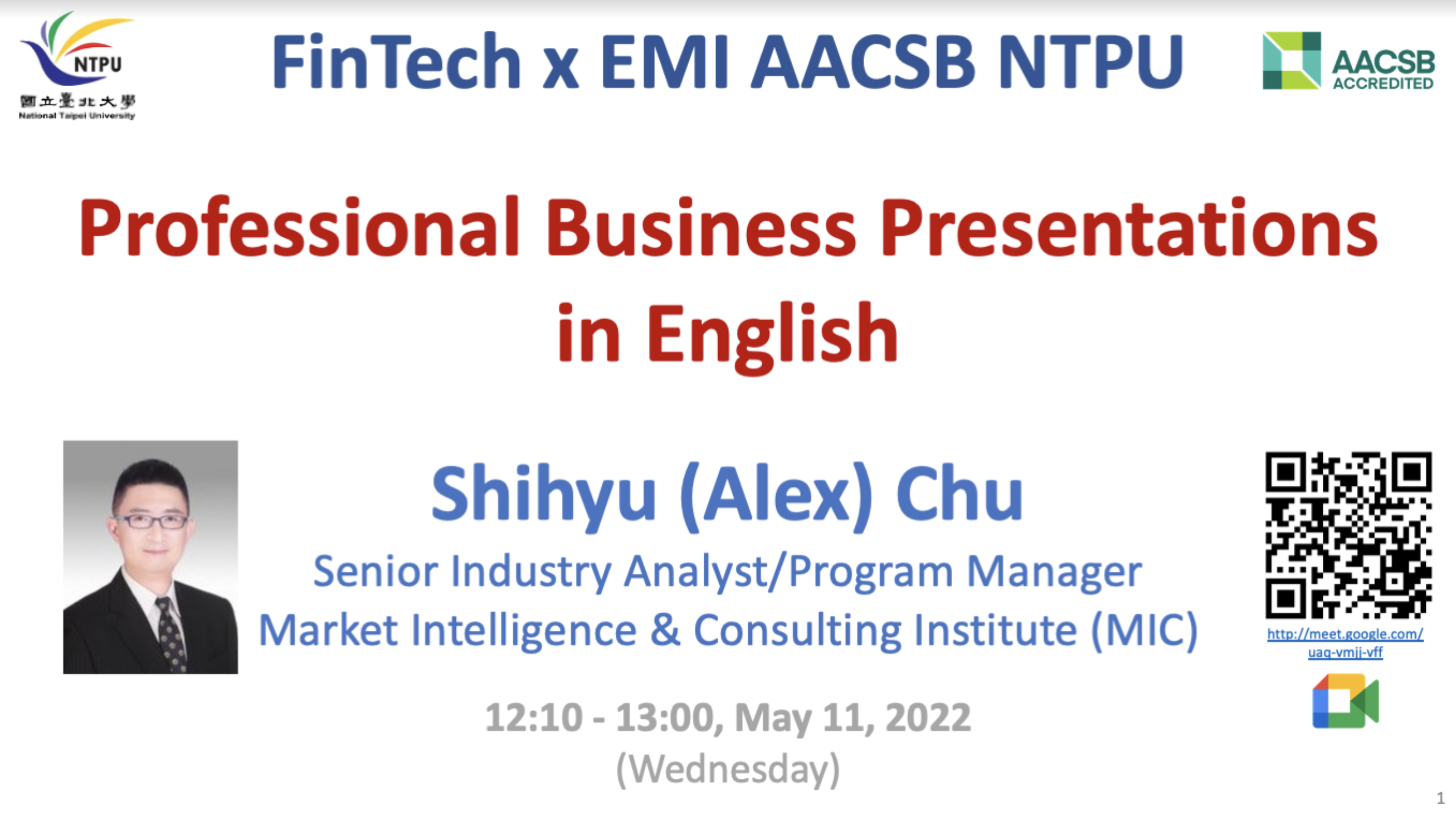 2022/05/11 EMI 教師社群活動: Professional Business Presentations in English 講者: 市場情報中心 朱師右經理 |