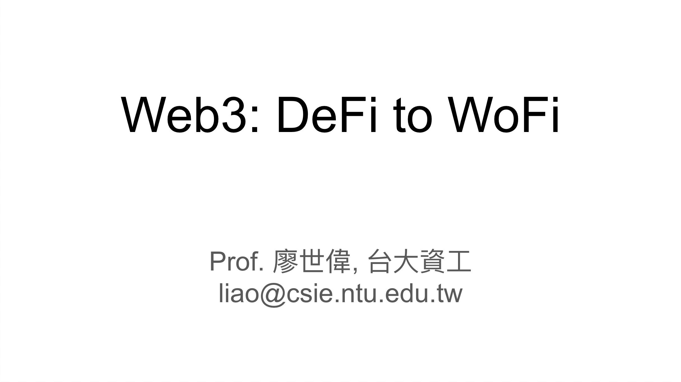 2022/05/18 EMI 教師社群活動:Web 3: From DeFi to WoFi 講者: 臺灣大學資工系 廖世偉教授 |