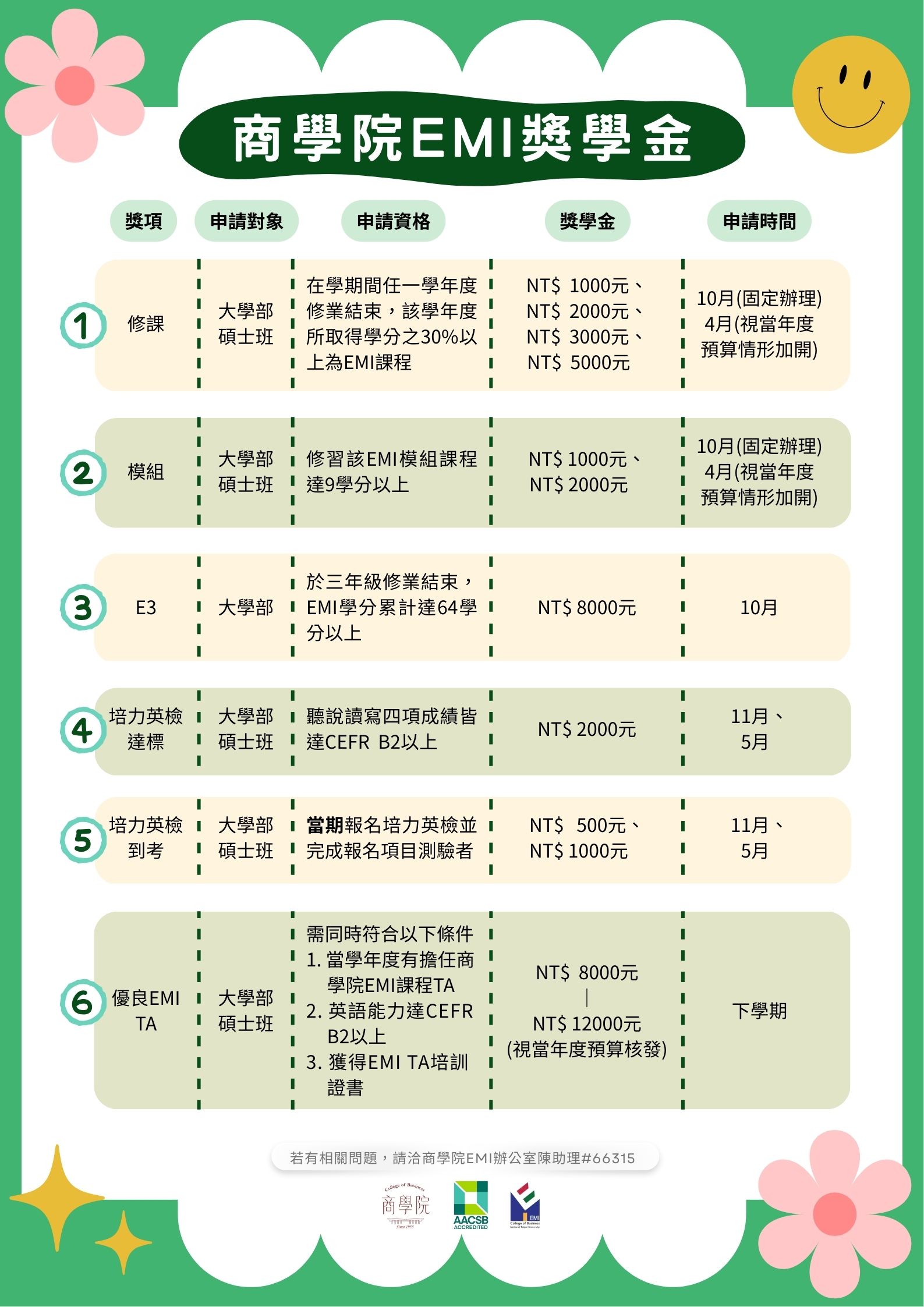 | EMI課程修習獎勵 |