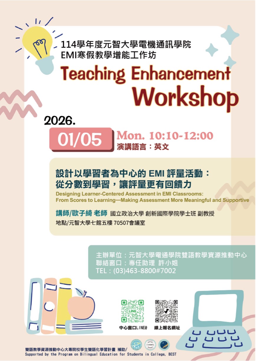 Topic: Designing Learner-Centered Assessment in EMI Classrooms: From Scores to Learning—Making Assessment More Meaningful and Supportive