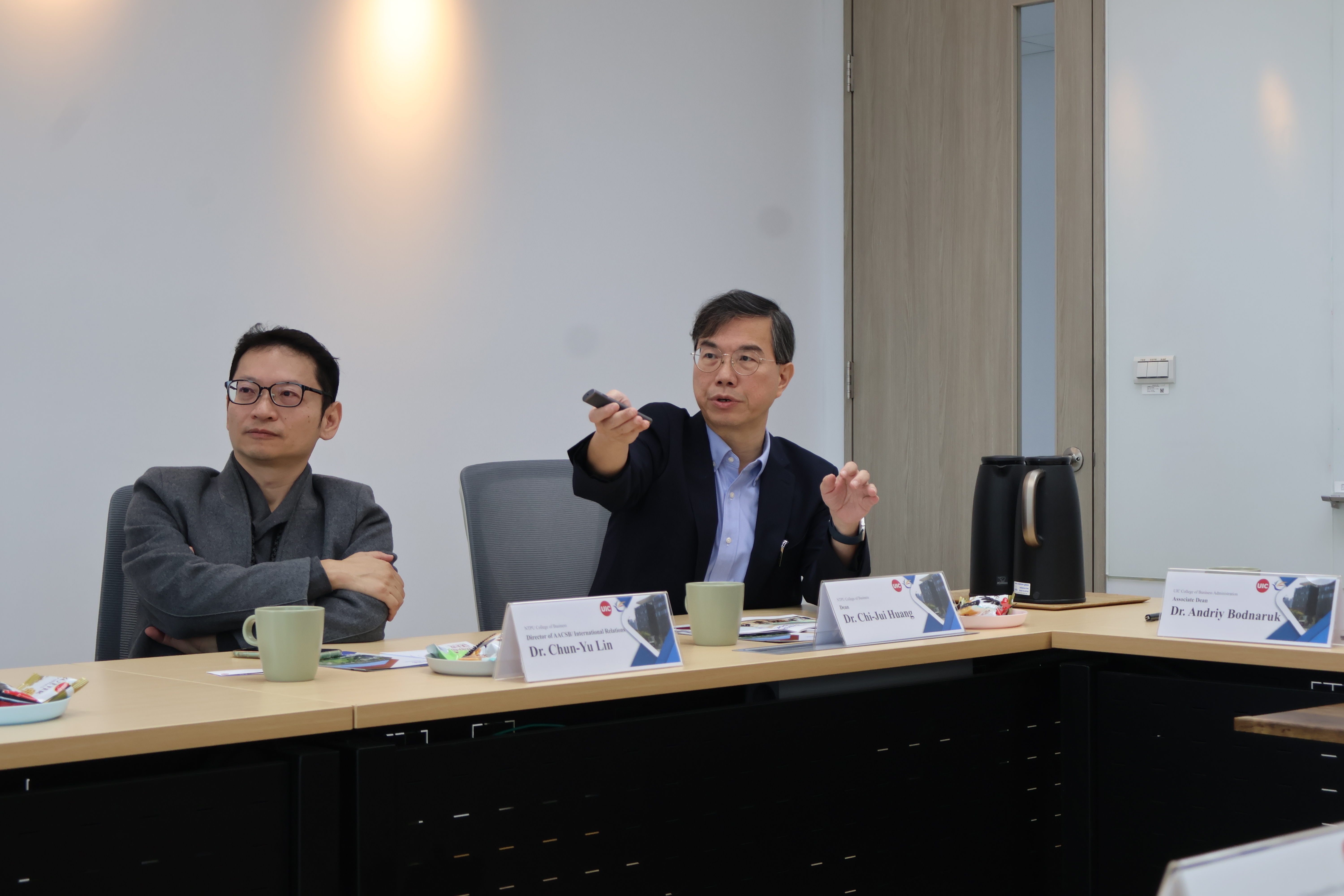 Dr. Bodnaruk was received by Dean of International Affairs Thijs A. Velema, College of Business Dean Chi-Jui Huang, International College of Sustainability Innovation Dean Sherry Chia-Ying Chan, and other faculty leaders including Min-Yuh Day, Chun-Yu Lin, Josef Kuo-Hsun Ma, Chien-Lin Lu, and Haobijam Basanta. The visit follows months of talks that began in August, with both sides moving toward a formal partnership expected to be signed by year’s end.