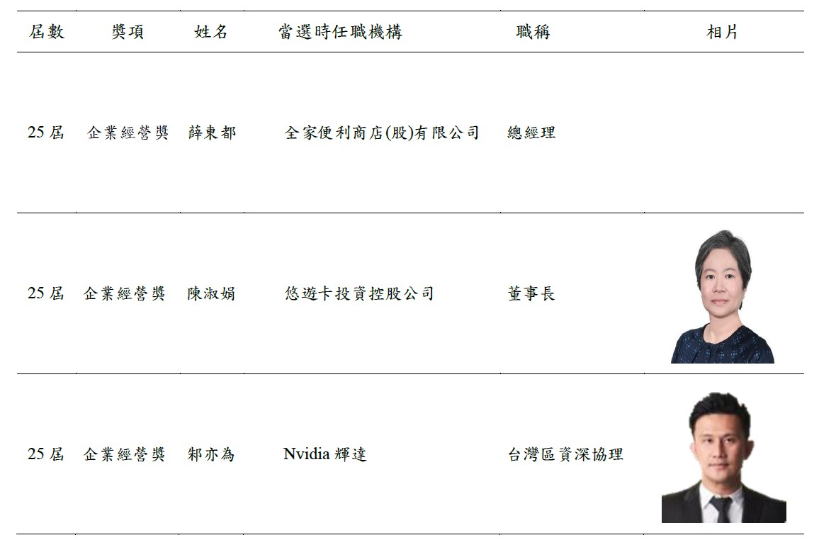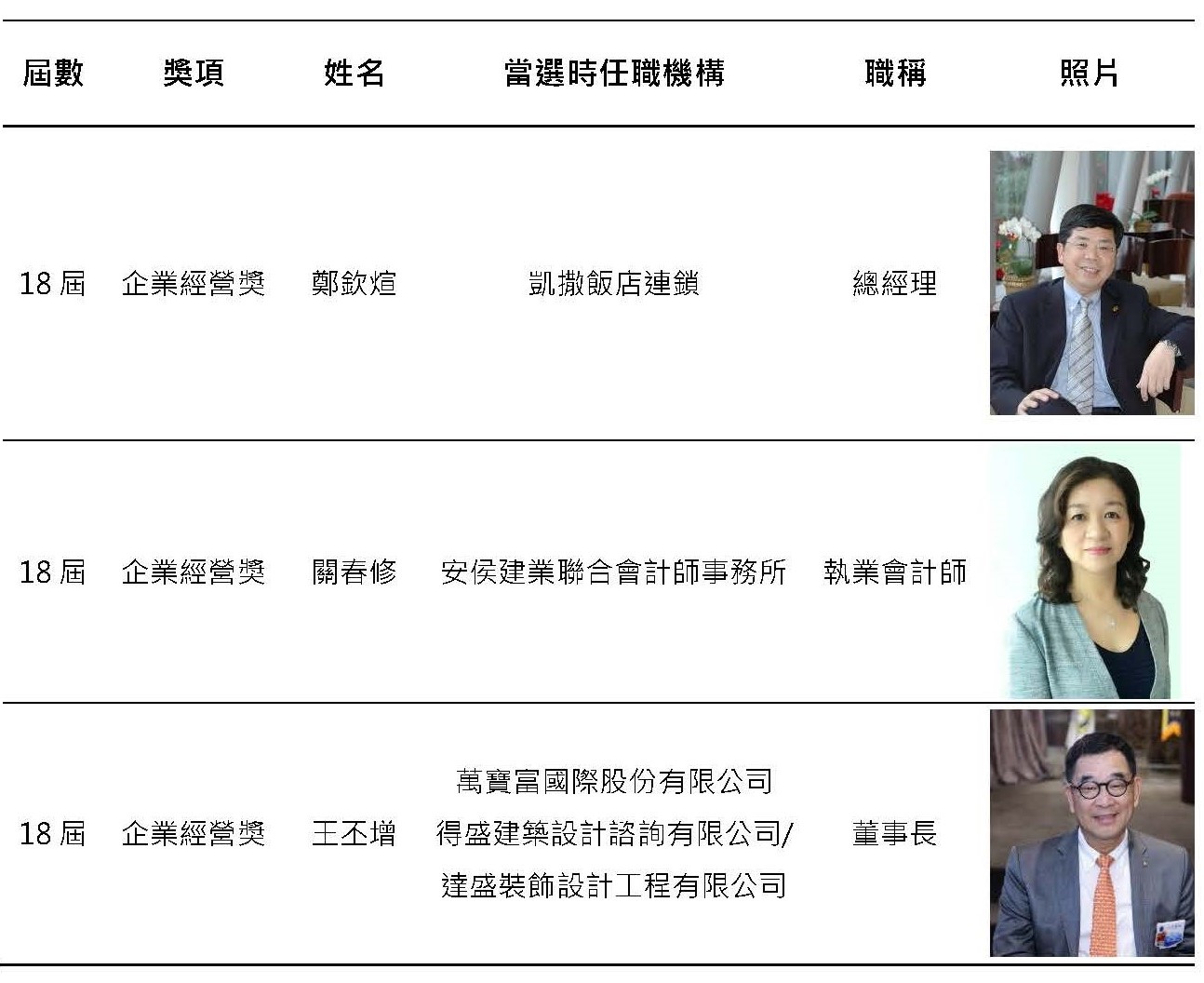 | 企業經營獎 | 周筱玲 | 企業管理研究所企業經理人高級班 |