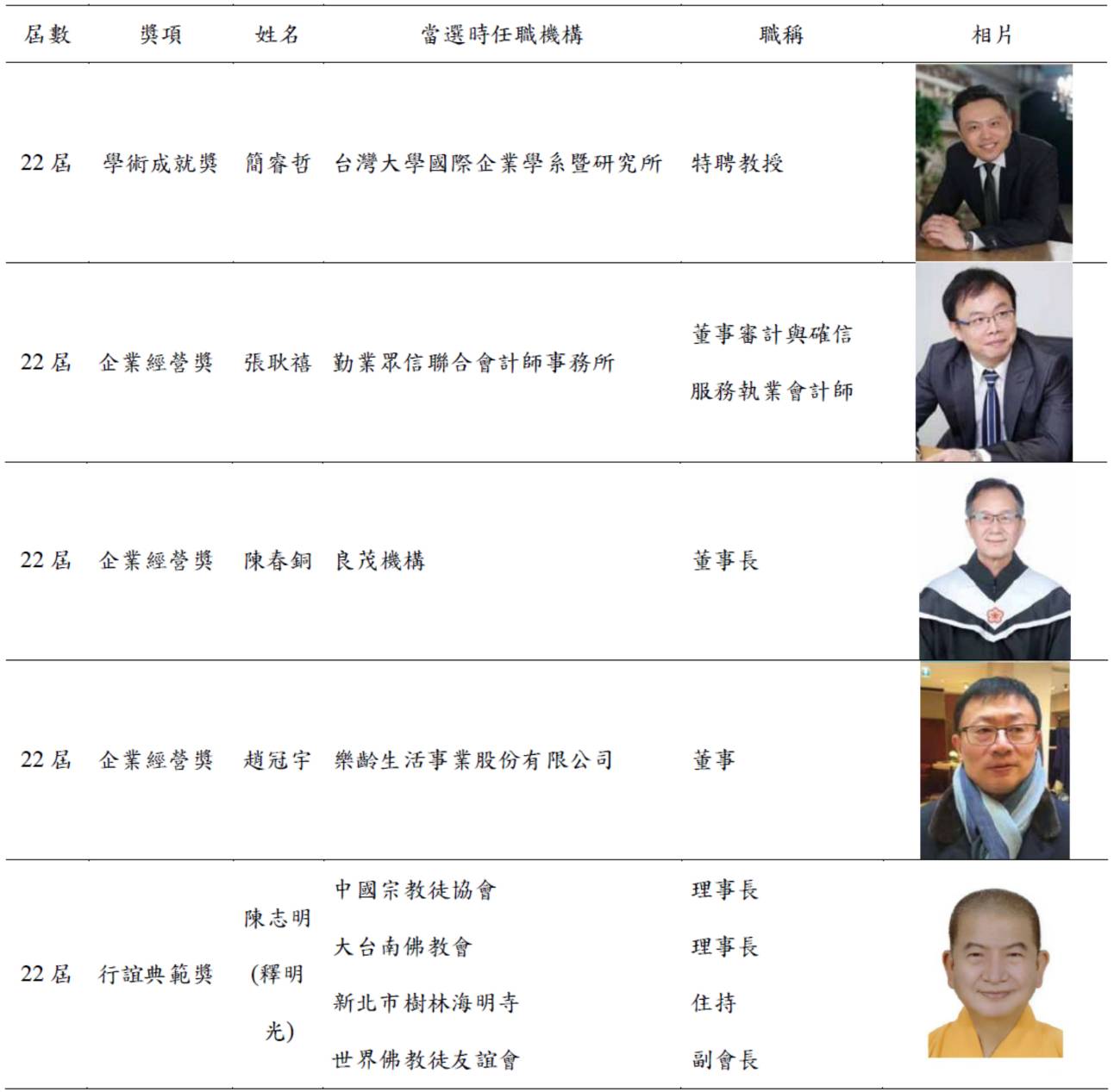 | 行誼典範獎 | 陳志明 (釋明光法師) |