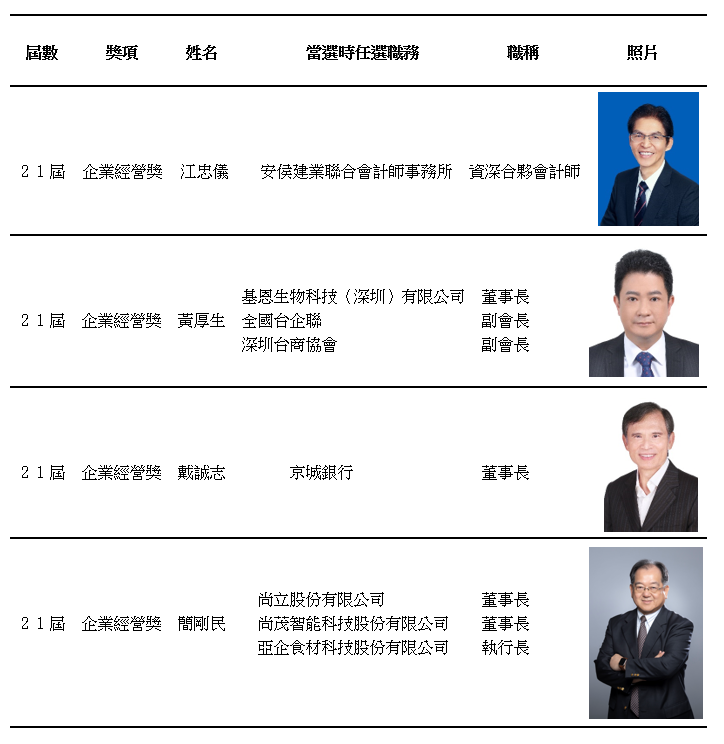 | 企業經營獎 | 許銘燦 | 企業管理學系研究所中小企業管理人員進修班 |