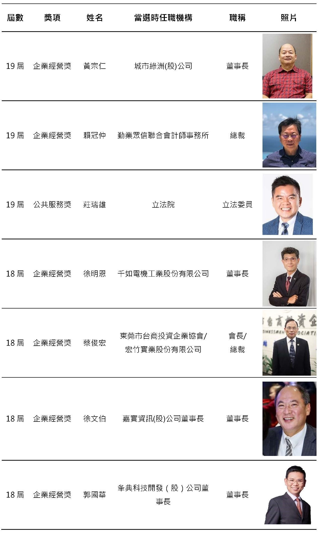 | 公共服務獎 | 呂錦美 | 企業管理研究所中小企業管理人員進修班 |