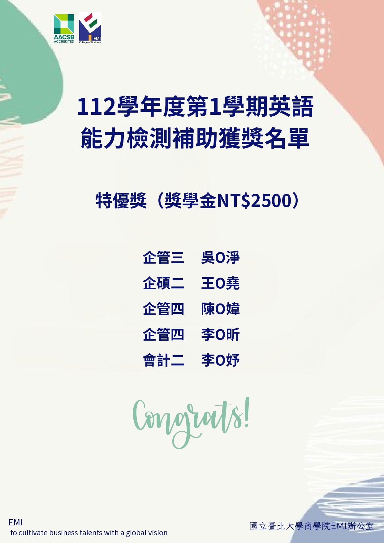 請獲獎同學於即日起至113年1月12日至商學院辦公室(3F03)領取證書。