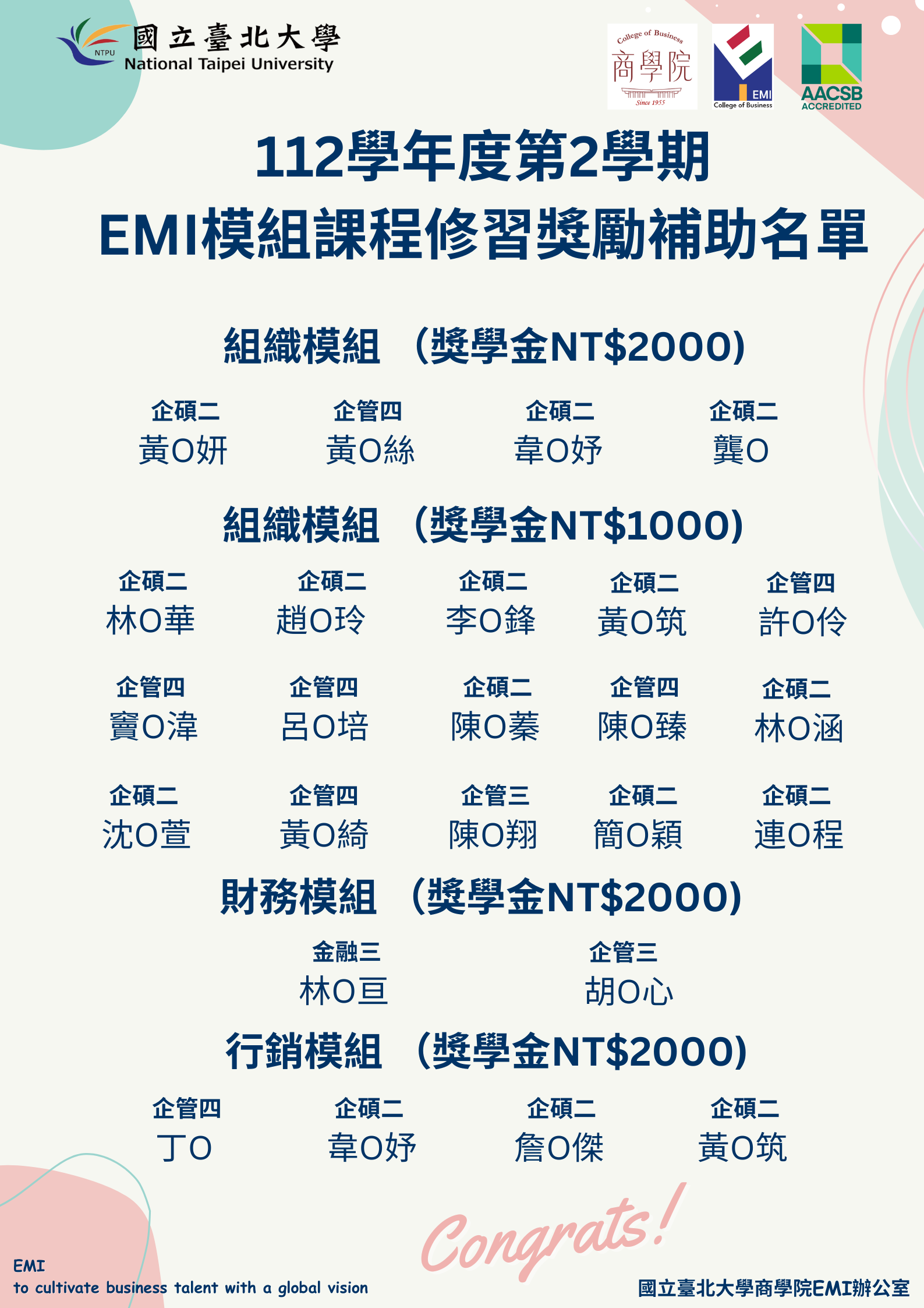 請獲獎同學於113年5月31日至6月07日至商學院辦公室(3F03)領取證書。